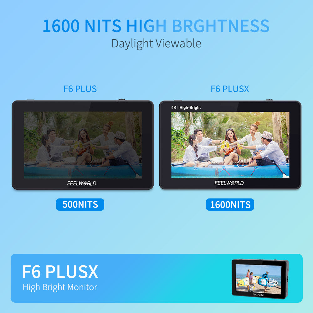 If you frequently use your camera to make videos, a field monitor may be a helpful tool for you. By attaching a monitor to your camera, you can get a bigger picture of what your camera is seeing, giving you a better sense of focus and composition. In this article , FEELWORLD will introduce a new release product --- F6 PLUSX high bright monitor.