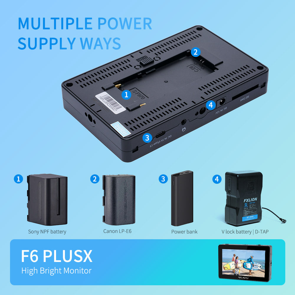 FEELWORLD F6 PLUSX has multiple power supply ways, providing strong power endurance.
