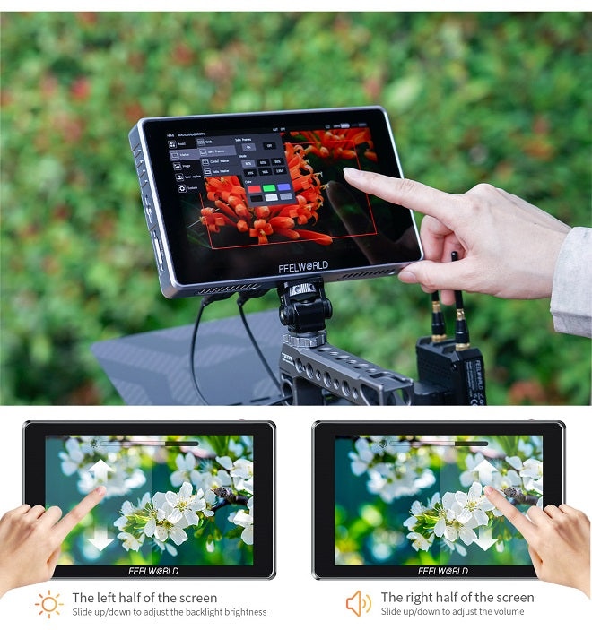 The monitor is equipped with 3 standard 1/4”mounting threads (bottom, right side, left side), you can easily mount it on the camera or other types of equipment with a magic arm, bracket, etc.. Meet the different monitoring for photographer or director.