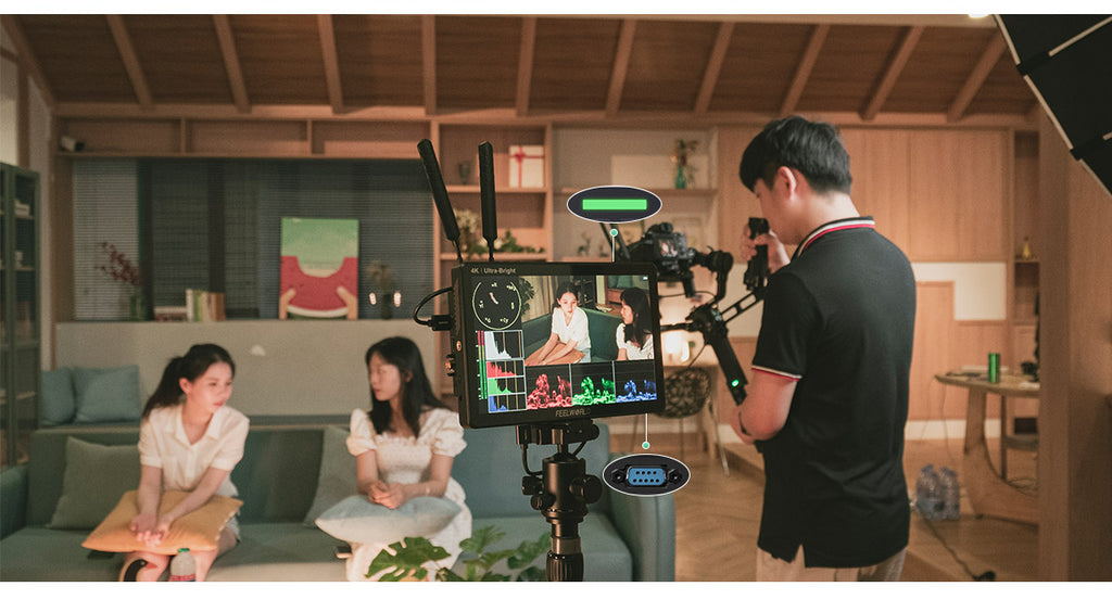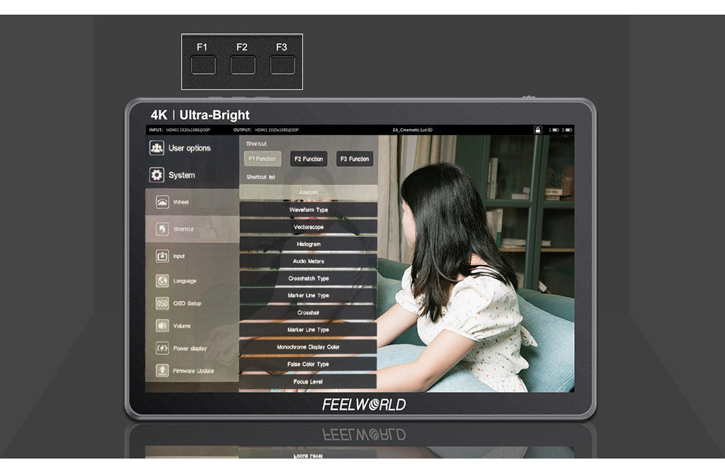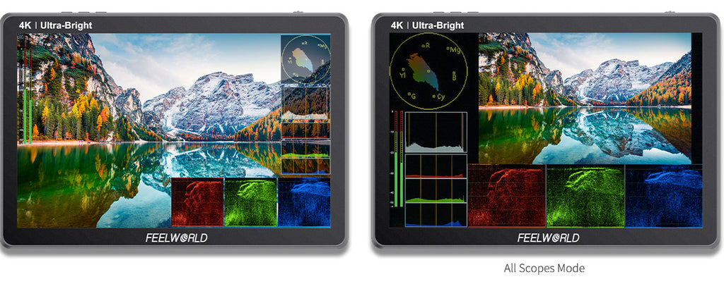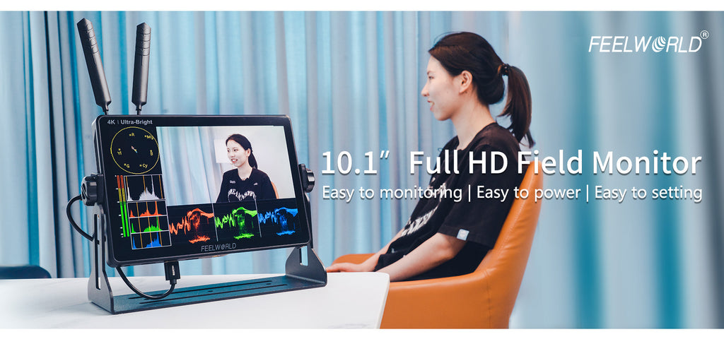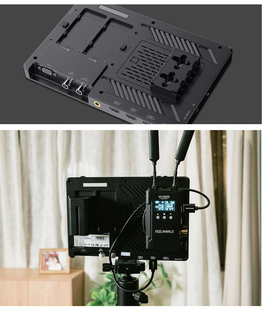 FEELWORLD LUT11S is a 10.1-inch with full touch screen, ultra brightness 2000nit professional camera monitor. Supports 3G-SDI and up to 4K@60Hz HDMI signal input and output. Provides a series monitoring and framing tools with new menu layout, various numerical parameters are clear at a glance, making the operation easier. There is a F970 external install and power kit on the rear of LUT11S, which can install such as wireless transmission, LED light, etc. It combines the monitor with wireless transmission to get rid of unnecessary cables, , which is perfect for director monitoring, 1st AC to focus pulling in the film crew. The dual battery plates design can install two F970 batteries at the same time for long-time power supply even outdoors. Ideal for crew field shooting, monitoring and post-production.
