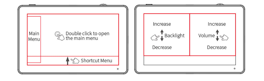 3. On the left side of the screen (1/2 split screen), you can directly adjust the brightness of the screen backlight; on the right side of the screen (1/2 split screen), you can directly adjust the volume.