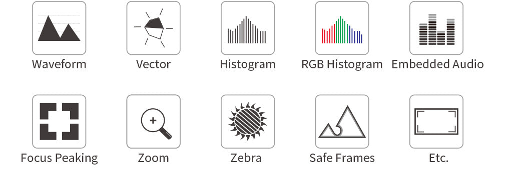 * With Waveform, Vectorscope, RGB Histogram, Focus Assist, Monochrome etc. functions, can help you accurately exposure and focus every shot.