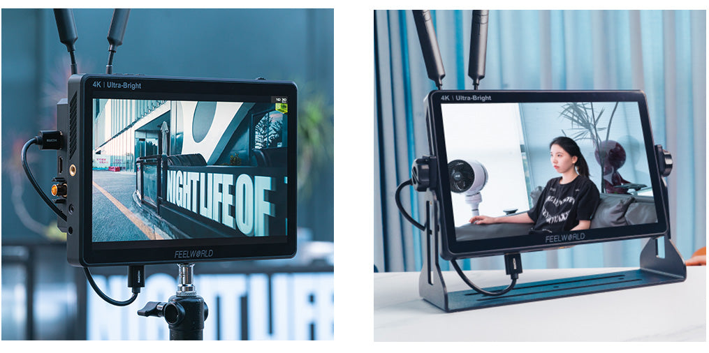 The monitor is equipped with 3 standard 1/4”mounting threads (bottom, right, left side), you can easily mount it on the camera or other types of equipment with a magic arm, bracket, etc.. Whether it is horizontal or vertical shooting, you can accurately monitor.