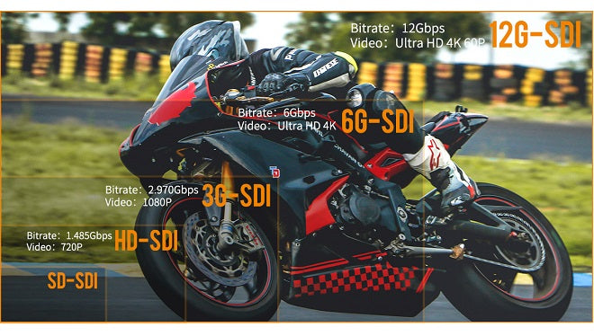 Adopting 12G-SDI single link technology and compatibility with 6G-SDI/3G-SDI/HD-SDI/SD-SDI, supporting 12Gbps per second transmission rate, better meeting the video transmission needs of high definition and high frame rate.