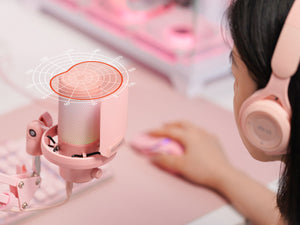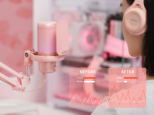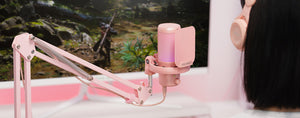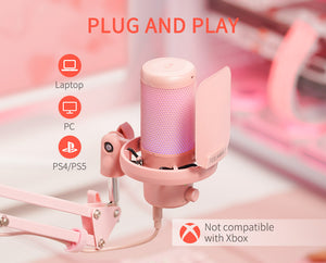 FEELWORLD VM1 Pink Gaming PC USB Condenser Microphone with Boom Arm Stand