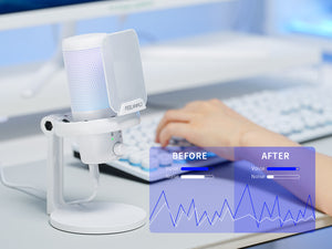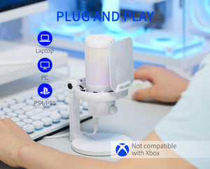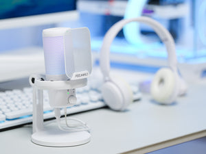FEELWORLD VM1 White Gaming PC USB Condenser Microphone with Desktop Stand