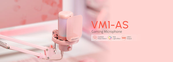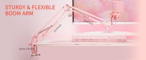 FEELWORLD VM1 Pink Gaming PC USB Condenser Microphone with Boom Arm Stand