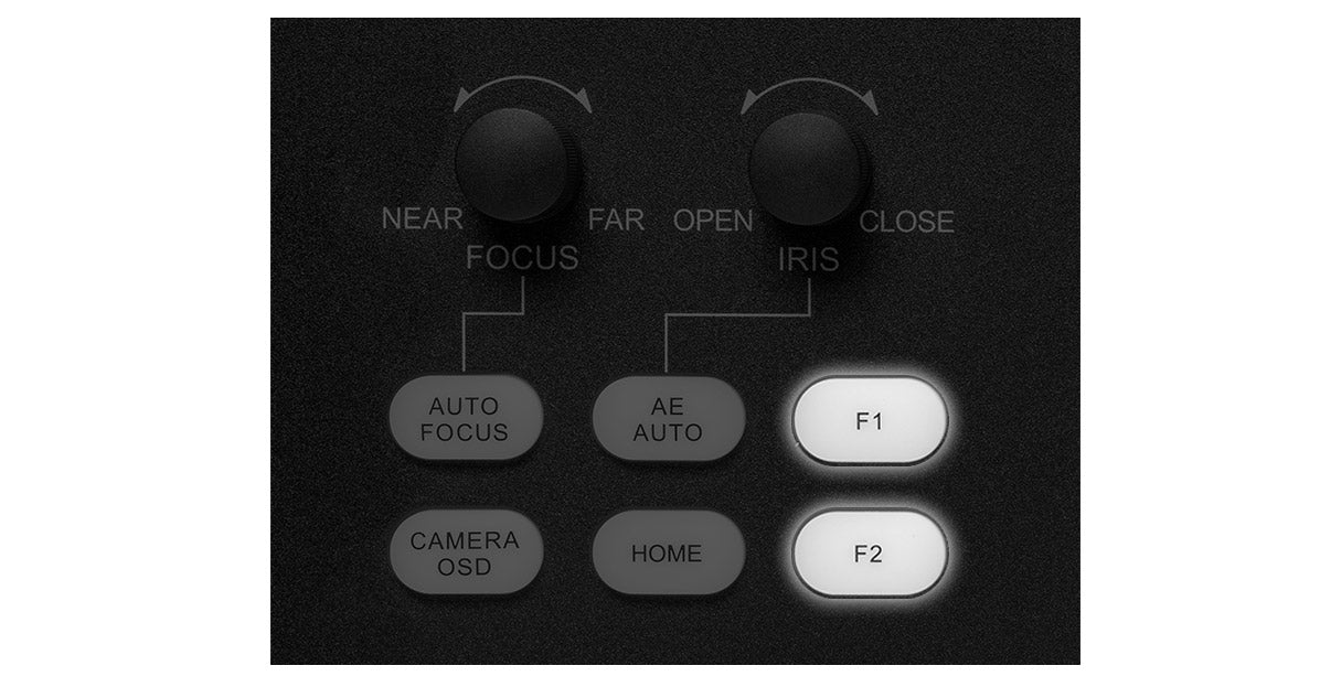 Two custom function buttons (F1 & F2) of front panel are customizable in IP VISCA & VISCA protocols. Just key in the custom name, and press ENTER button to confirm, then key in VISCA command.