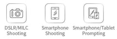 * Smartphone/tablet prompting, DSLR camera shooting.