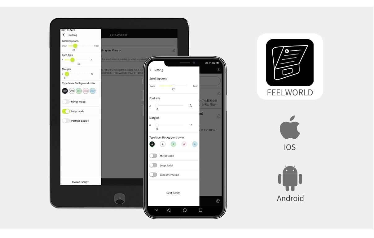 The TP2A equips APP for smartphone/tablet which suitable for Android & IOS system. With bluetooth remote control, you could easily play & pause, speed up & slow down, change the text and background color, etc.