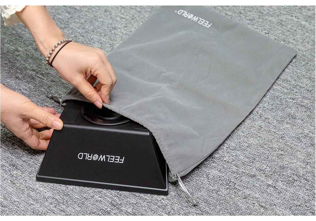 The TP2A is compact in size and weighs only 300 grams, which is easy to put into a attached drawstring bag to protect the teleprompter while also allowing quick transition. In addition, the attached microfiber cloth can keep the teleprompter clean at all times.