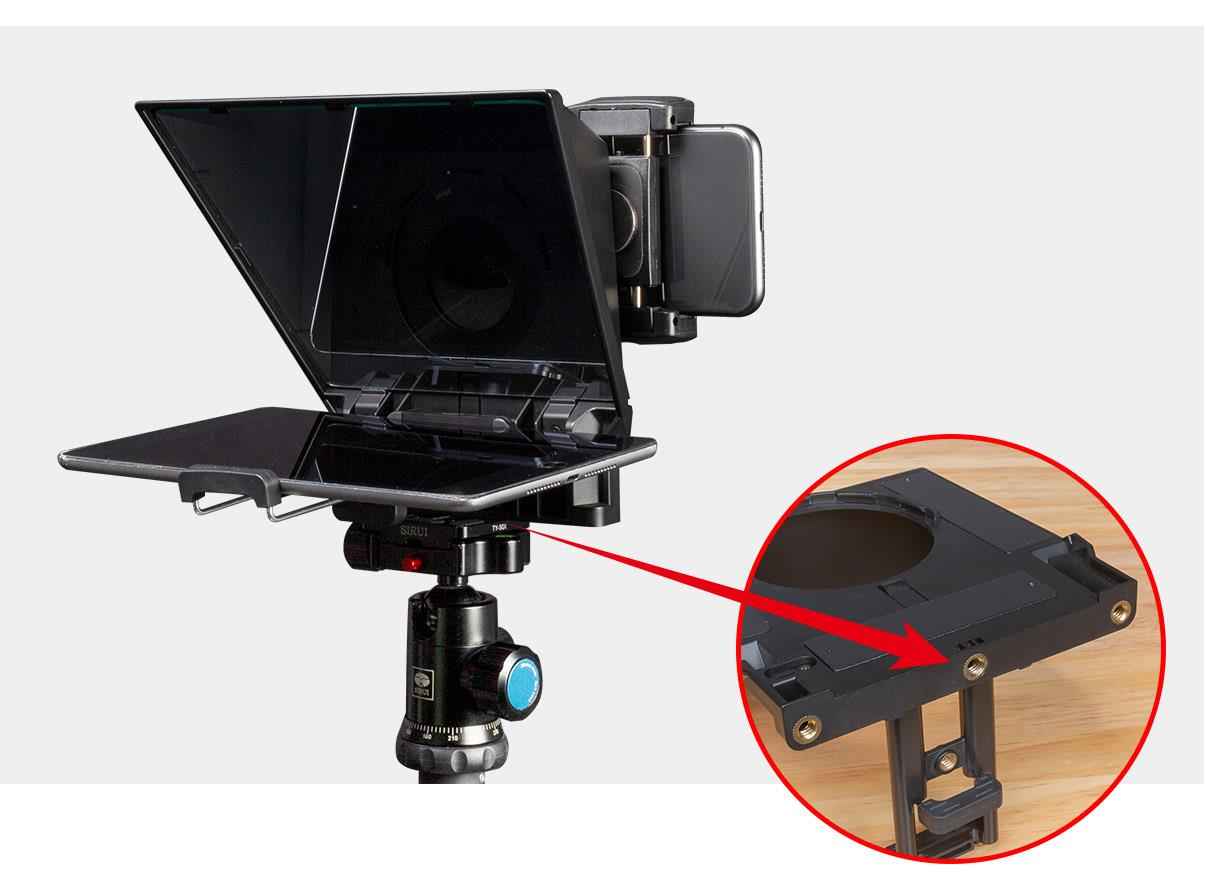 When you use smartphone shooting , the magnetic smartphone clamp included with the TP2A can not only hold the smartphone on the teleprompter for shooting with horizontal or vertical screens, but also make it easy to take the smartphone out to monitor the shooting effect.